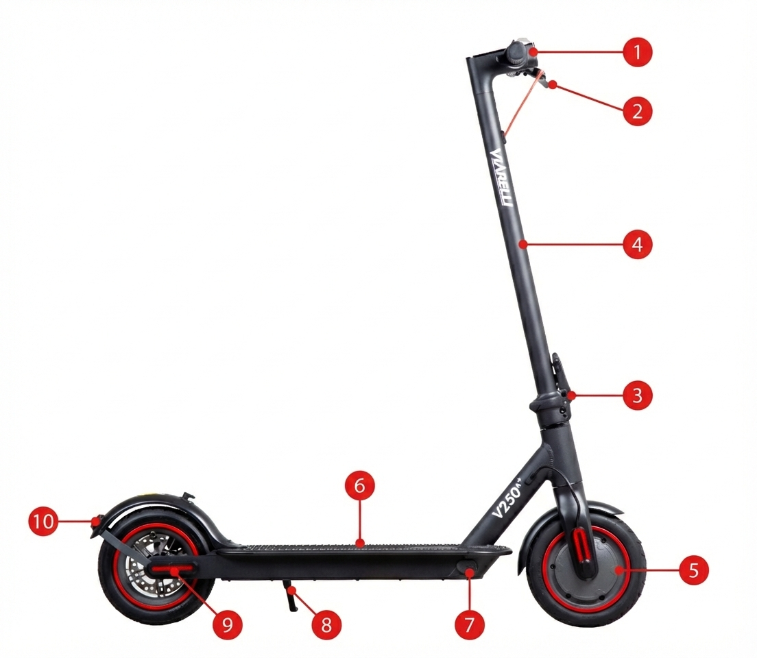 - Elektronik och fukt är en dålig kombination. Håll scootern borta från regn och frost.